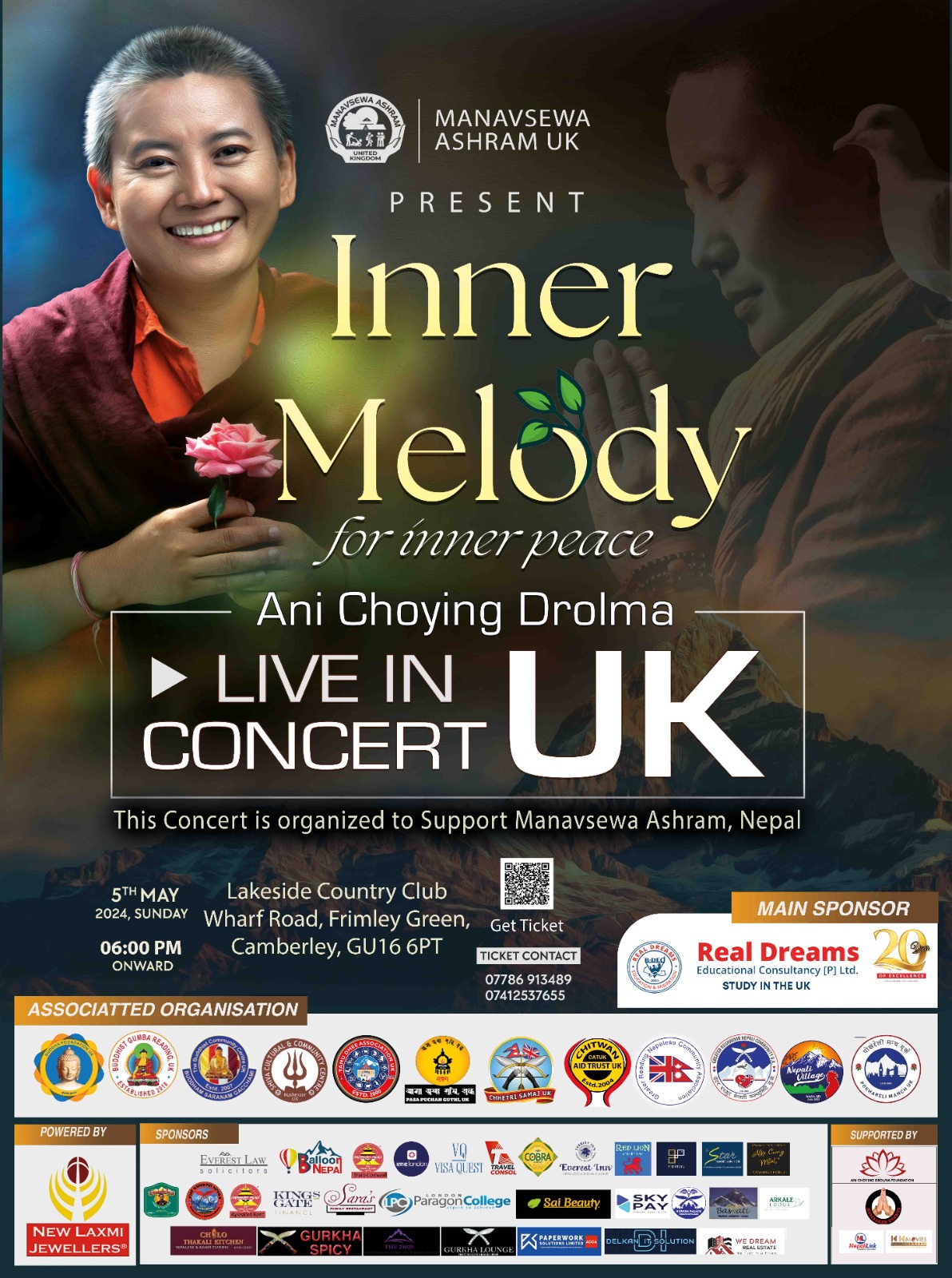 मानवसेवा आश्रम सहयोगार्थ बेलायतमा आनी छोइङ डोल्मा ज्युद्धारा कन्सर्ट हुर्दै